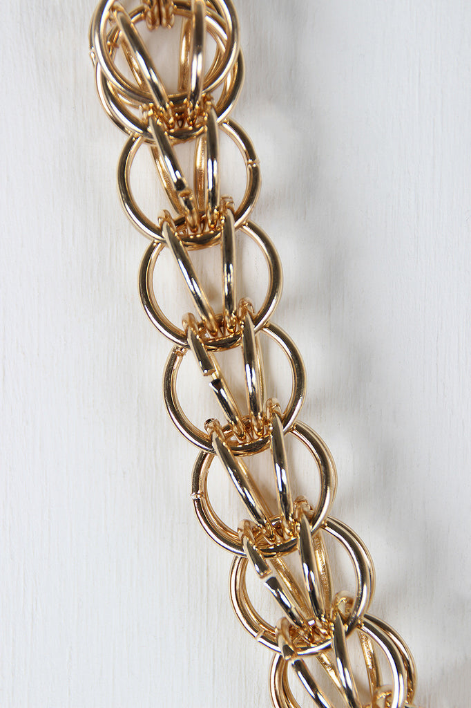 This necklace features a high polished metallic finish, inter-woven links, cable chain, matching earrings, and an adjustable lobster claw closure.