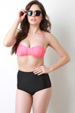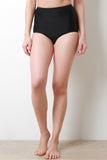 This bikini bottom features a high rise construction, semi sheer mesh sides, brief bottom, and fully lined. Accessories sold separately. 80% Nylon, 20% Spandex. Lining: 100% Polyester.