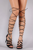 This stunningly chic heel features an open toe silhouette, strappy construction with lace up design, and wrapped stiletto heel. Finished with lightly padded insole and rear zipper closure for easy on/off.