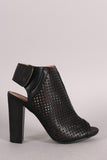 This breezy heel features a perforated vegan leather with partial elastic gusset insert, center seams detail, and peep toe silhouette. Finished with a chunky faux wooden heel, lightly padded insole, and double snap button closure.