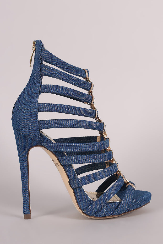 Liliana Denim Hardware Accent Strappy Stiletto Heel
