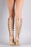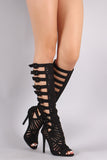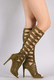 This stylish heel features a strappy construction with side buckles embellishment, geometric cutout design vamp, peep toe silhouette, and stiletto heel. Finished with lightly padded insole and rear zipper closure for easy on/off.