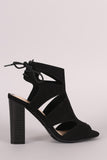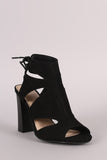 These stylish peep toe feature a keyhole cutout design, back lace-up closure, and chunky stacked heel. Finished with a lightly padded insole for comfort.