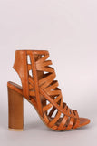 Bamboo Strappy Cutout Peep Toe Chunky Heel