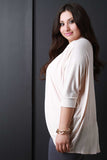 This plus size cardigan features an open front construction, three-quarter dolman sleeves with cuff, and curved hemline. Accessories sold separately. Made in U.S.A. 97% Viscose, 3% Spandex.