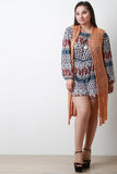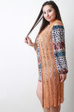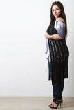 This cardigan features a woven knit fabrication with contrasting vertical stripes design, open front, sleeveless fit, and knee-length hemline. Accessories sold separately. 100% Polyester.