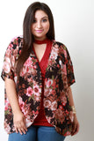 This plus size kimono features a floral printed chiffon fabric, open front desigh, and dolman sleeves construction. Accessories sold separately. Made in U.S.A. 100% Polyester.