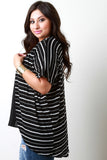 This trendy plus size cardigan features a crochet knit fabrication designed with horizontal stripes, open front construction, and short dolman sleeves. Accessories sold separately. Made in U.S.A. 78.8% Rayon, 18.2 Polyester, 3% Spandex.