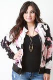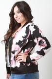 This plus size jacket features large floral pattern print, contrasting collar and hem, long sleeves, finished with a zipper fastener at front. Accessories sold separately. Made in U.S.A. 96% Polyester, 4% Spandex.