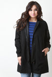 This jacket features a longline design, zipper fastener front, ribbed knit collar, long sleeves, side zipper pockets, and fully lined. Accessories sold separately. 100% Polyester.