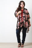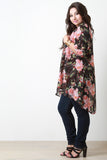 This lightweight floral prints, elbow-length kimono sleeves, draped open front design, and high low hemline. Accessories sold separately. 100% Polyester.