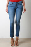 These jeans feature classic 5 pockets, belt loops, zipper fly with single button closure, and paneled raw hem. Accessories sold separately. 58% Cotton, 18% Rayon, 22% Polyester, 2% Spandex.