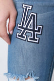 These skinny jeans feature fun graphic patches, distressed details, frayed hem, classic 5-pocket design, belt loops and finished with a zipper and single button closure. Accessories sold separately. 97% Cotton, 3% Spandex.