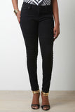 This edgy jeans feature a stretch denim fabrication, classic 5-pocket style, zipper fly and single button closure, patch knee detail with top stitching, skinny jean fit. Accessories sold separately. 52% Cotton, 21% Viscose, 25% Polyester, 2% Spandex.