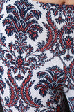 These pants feature smooth stretch fabric, jacquard print, elasticized waist, and flared bottoms. Accessories sold separately. Made in USA. 95% Polyester, 5% Spandex.