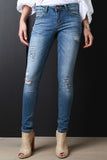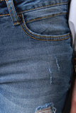 These jeans features a distressed look, with a 5-pocket design, stretch denim fabrication, slim fit and a single button and zipper closure. Accessories sold separately. 75% Cotton, 23% Polyester, 2% Spandex