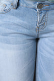 These denim jeans features a low rise waist with belt loops, classic 5-pockets, taper cut legs, and release dyed hemline. Accessories sold separately. 71% Cotton, 27% Polyester, 2% Spandex.