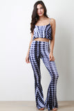 These pants feature soft jersey knit, tie dye, elasticized waist, and bell bottoms. Accessories sold separately. Made in USA. 96% Rayon, 4% Spandex.