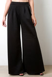 These vintage pants feature a smooth knit fabrication, pleated construction, high waisted wide band, wide leg, and two side pockets. Loose fitting. Accessories sold separately. Made in U.S.A. 96% Polyester, 4% Spandex.