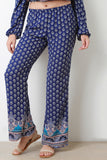 These pants features bohemian pattern print, elasticized waist, and flare cut fit. Accessories sold separately. Made in U.S.A. 100% Polyester.