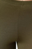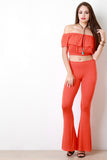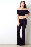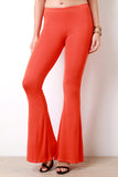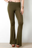 These casual pants feature a jersey knit fabrication, high waisted fit, and finished with a flare cut construction. Accessories sold separately. Made in U.S.A. 94% Rayon, 6% Spandex.
