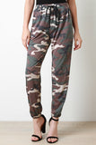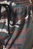 These jogger pants feature a jersey knit fabric, elasticized waist with self-tie drawstring, military camo print pattern, and cuffed hemline. Accessories sold separately. 69% Polyester, 27% Rayon, 4% Spandex.