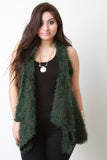 This plus size vest features a faux fur design at front with contrast knit at back, sleeveless construction, open front with drape design, and asymmetrical hem. Accessories sold separately. 60% Polyester, 40% Acrylic.
