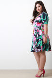 This floral print throughout, and midi-length flare skirt with overlapping front. Accessories sold separately. Made in U.S.A. 96% Polyester, 4% Spandex.