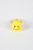This flirty ring features a yellow sphere with the winking emoji on it, finished with a high-polished metal frame. Adjustable.
