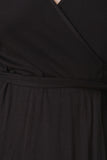This chic jumpsuit features a deep v surplice neckline, deep v back, self tie waist, long sleeves, soft knit fabrication, and cropped wide cut legs. Accessories sold separately. Made in U.S.A. 95% Rayon 5% Spandex.