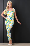 This cutesy jumpsuit features a stretchy knit fabric, lemon-printed throughout, self-tie shoulder straps, and tapered cut legs. Accessories sold separately. Made in U.S.A. 95% Polyester, 5% Spandex.