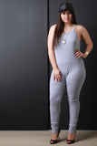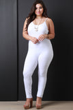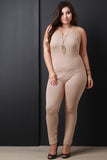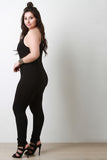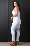 This plus size jumpsuit features soft jersey knit, spaghetti straps, scoop neckline, low cut back, and taper cut legs. Fitted design. Accessories sold separately. 95% Cotton, 5% Spandex