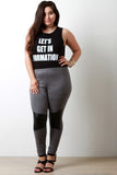 This plus size romper features a jersey knit fabrication, "Lets Get In Formation" graphic print detail, round neckline, and sleeveless fit. Finished with an exposed rear zip-up closure. Accessories sold separately. Made in U.S.A. 95% Cotton, 5% Spandex.