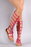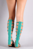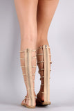This stylish sandal features an open toe silhouette, gold metallic rings embellishment held by knots, and rear zip-up closure. Finished with a lightly padded insole for comfort.