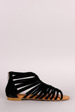 This flat sandal features a nubuck upper, open toe silhouette, and strappy knot-detailed vamp. Finished with a lightly cushioned insole, and rear zip-up closure.