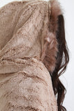 This adorably furry circle scarf features a soft fur fabrication, circle scarf design with an attached hood with a contrast fur trim. 100% Acrylic.