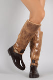 Bamboo Buckled Raw Collar Knee High Rain Boots