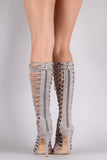 This unique lace-up front, and wrapped stiletto heel. Finished with lightly padded insole and convenient back zip closure.