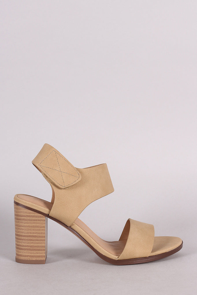This casual heel features an open toe silhouette, one band across vamp, and chunky stacked heel. Finished with an ankle cuff with hook and loop closure.