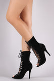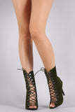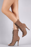 • Suede Peep Toe Lace-Up Stiletto Boots
