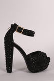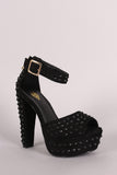 Suede Studded Spike Peep Toe Ankle Strap Chunky Platform Heel