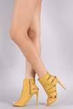 Suede Slash Cutout Peep Toe Stiletto Booties