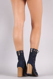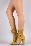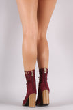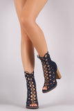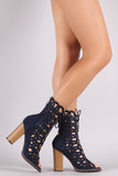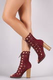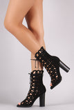 Suede Geo Cutout Chunky Heeled Lace Up Booties