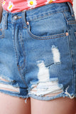 Step into this A Cut Above High Waisted Shorts for a look that's more than ordinary! These denim shorts features distress holes at front and back pockets, fringe cutoff hemline, classic 5-pockets design, belt loops, zipper fly, finished with a single button closure. Accessories sold separately. 100% Cotton.