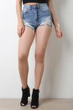 These shorts features distress front design, raw fringe hemline, classic 5-pockets, high waisted, belt loops, zipper fastener and a single button closure. Accessories sold separately. 100% Cotton.