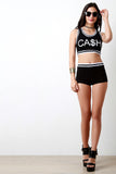 These sexy shorts feature a jersey knit fabrication with contrasting striped trim, high waisted fit, and brief cut. Accessories sold separately. Made in U.S.A. 95% Cotton, 5% Spandex.