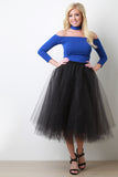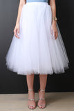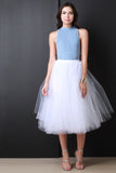 This soft tulle a-line skirt features a semi-sheer mesh overlay with solid knit fabric underlay, wide elasticized waist, and pleated detail. Accessories sold separately. Made in U.S.A. 90% Nylon, 10% Spandex.