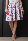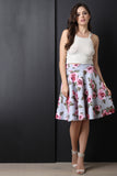 This midi skirt features a knit neoprene fabrication, sketched floral print pattern, wide waistband, full circle skirt silhouette and a raw hemline. Accessories sold separately. Made in U.S.A. 95%Polyester, 5% Spandex.