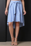 This skirt features contrasting vertical stripes, wide waist seam, self-tie sash, box pleating, A-line cut, and a high low hemline. Accessories sold separately. 100% Cotton.