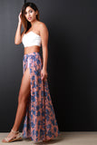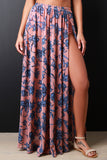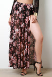 This beautiful maxi skirt features a semi-sheer mesh fabric with brief underlay, floral print design, high vent front slit, and elasticized high waisted fit. Accessories sold separately. Made in U.S.A. Self: 95% Polyester, 5% Spandex. Lining: 95% Rayon, 5% Spandex.